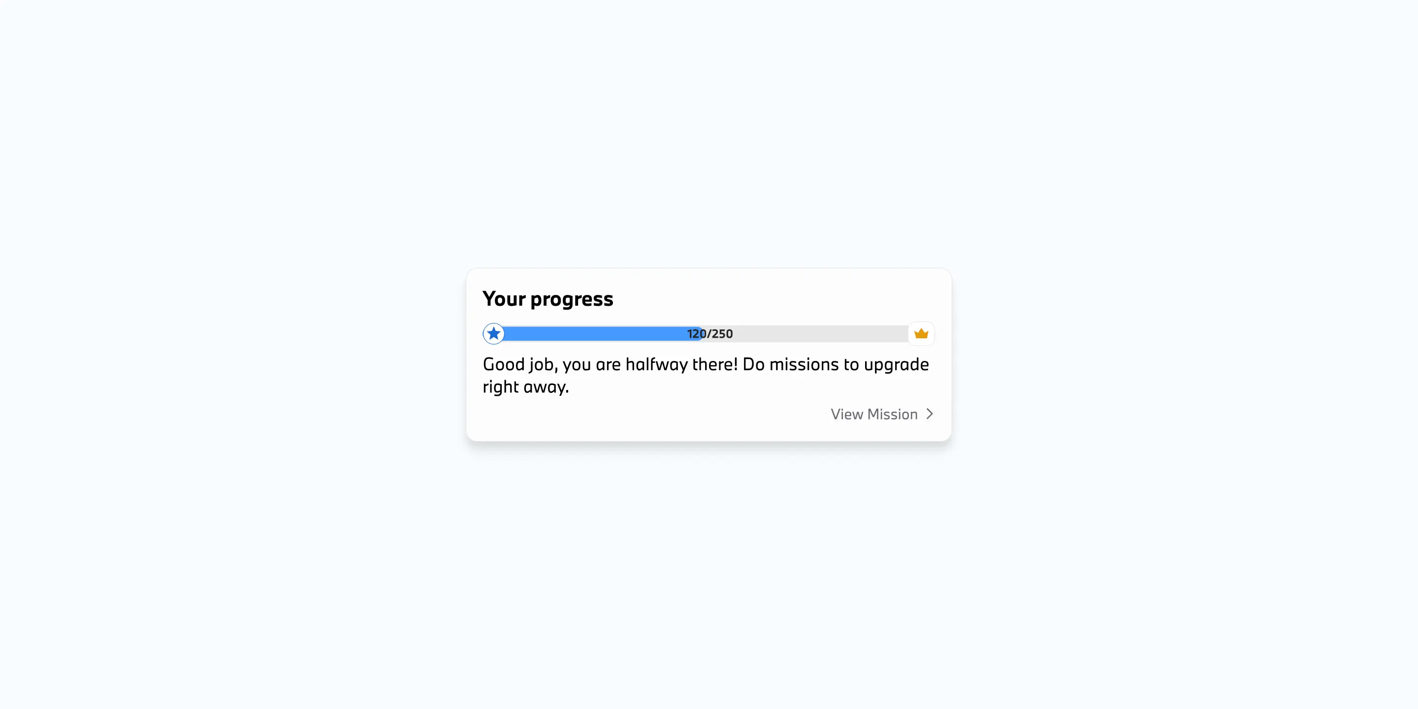 I introduced an animated progress bar with personalised messages, encouraging users to earn more points. The progress bar clearly indicated how close users were to unlocking the next tier, while call-to-action (CTA) buttons guided them to complete missions and reach their goals.
